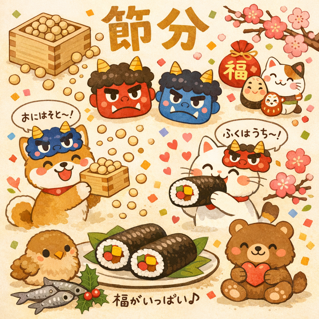 節分、心も身体もリセットへ 2026.2.3 り、暦の上ではもう春。 とはいえ、まだまだ寒い日が続き、日差しは弱く、朝ふとんから出るのは辛い。 節分の今日は「鬼は外、福は内」。 老廃物やモヤモヤや疲れは外へ、元気と笑顔は内へ。節分は、そんな“リセットの日”にぴったり。 新しい季節に向...more